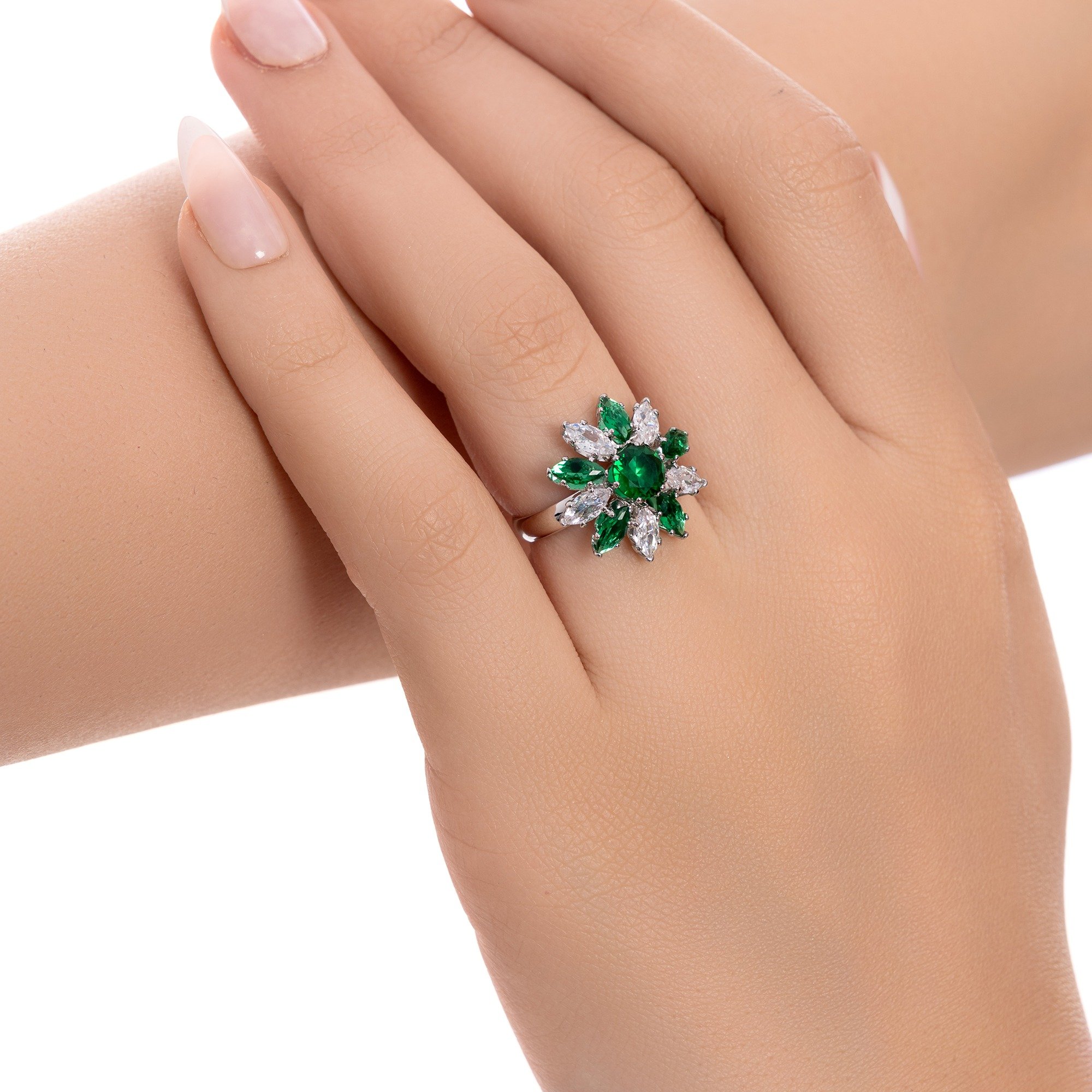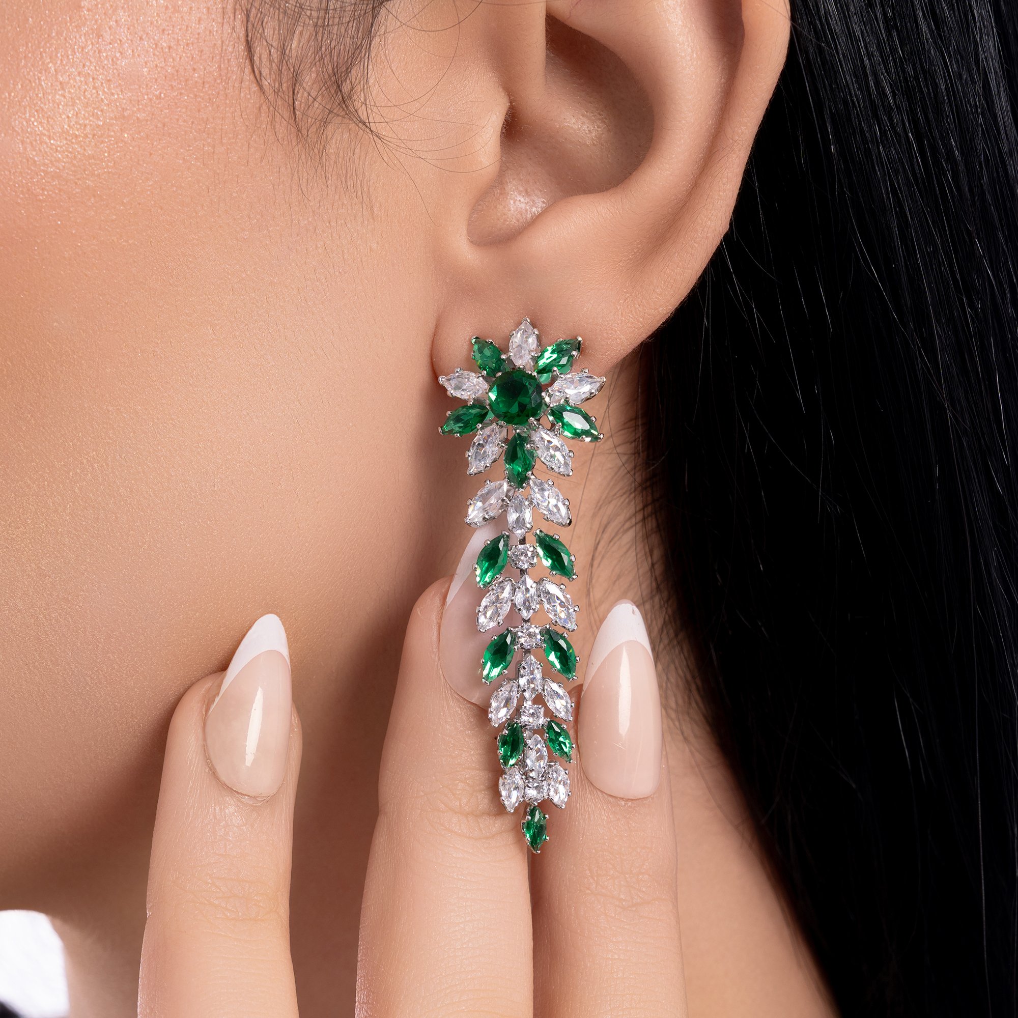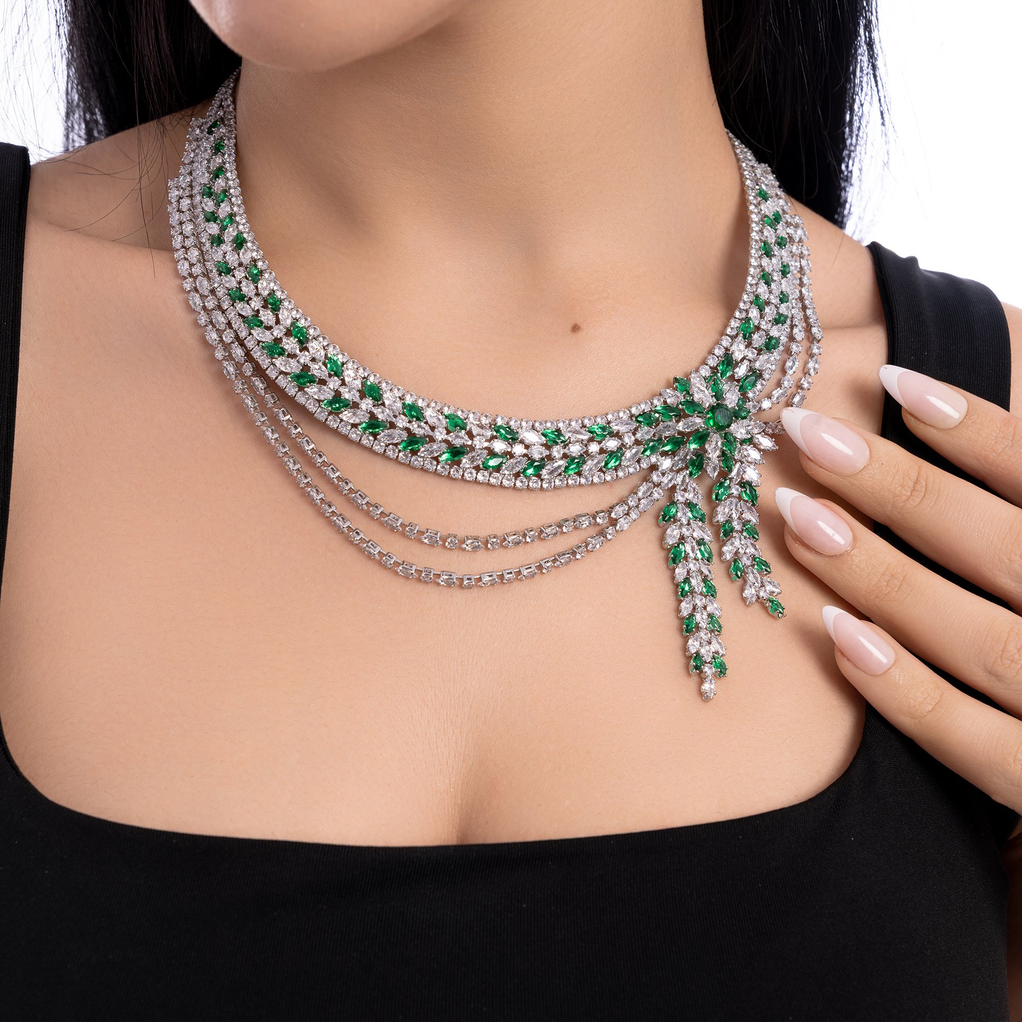 طقم زركون نسائي فاخر من BELLAVLY – تصميم Royal Emerald بفصوص خضراء متألقة